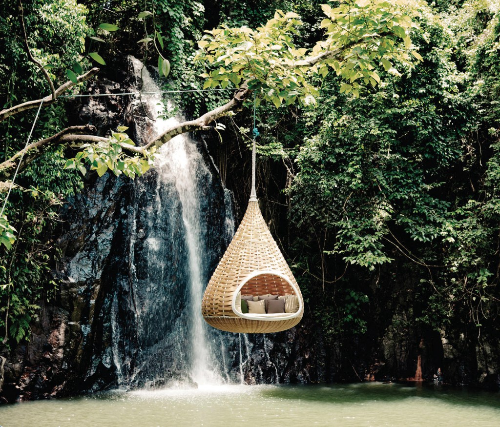 Commercialisé par la marque allemande Dedon, ce nid douillet est tressé autour d’un cadre en aluminium avec de la fibre en résine synthétique à base de polyéthylène, un matériau ultra résistant. Suspendu dans les airs, il virevolte, pivote (jusqu’à 360 degrés) et berce ses occupants, tout en les protégeant dans un écrin de douceur. Vous vous en doutez, ce luxe n’est pas à la portée de toutes les bourses, comptez minimum 10 000 € (prix variable suivant les revendeurs).
